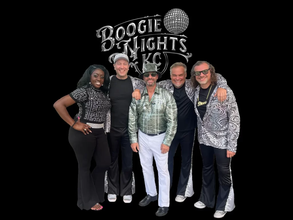 The 1970s was an era that created a theme that has yet to be rivaled when it comes to good times, dancing, and funky grooves. That theme is what drives Boogie Nights KC, The USA’s most exciting Disco Band Playing all your favorite Disco hits from the hippest era ever. Band members are highly seasoned professional entertainers — wearing outrageous 1970’s era clothing and providing music and hijinks onstage to entertain all ages.